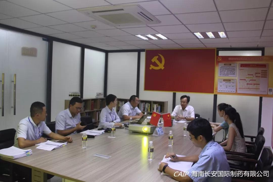 7月26日下午,高新區(qū)黨工委郭志偉副書(shū)記一行三人,蒞臨海南長(zhǎng)安國(guó)際制藥有限公司黨支部調(diào)研指導(dǎo)黨建學(xué)習(xí)情況,長(zhǎng)安制藥黨支部汪立冬書(shū)記協(xié)同長(zhǎng)安制藥黨支部和高新區(qū)藥谷一期(國(guó)科園)流動(dòng)黨支部各黨員、預(yù)備黨員、積極分子出席本次會(huì)議。