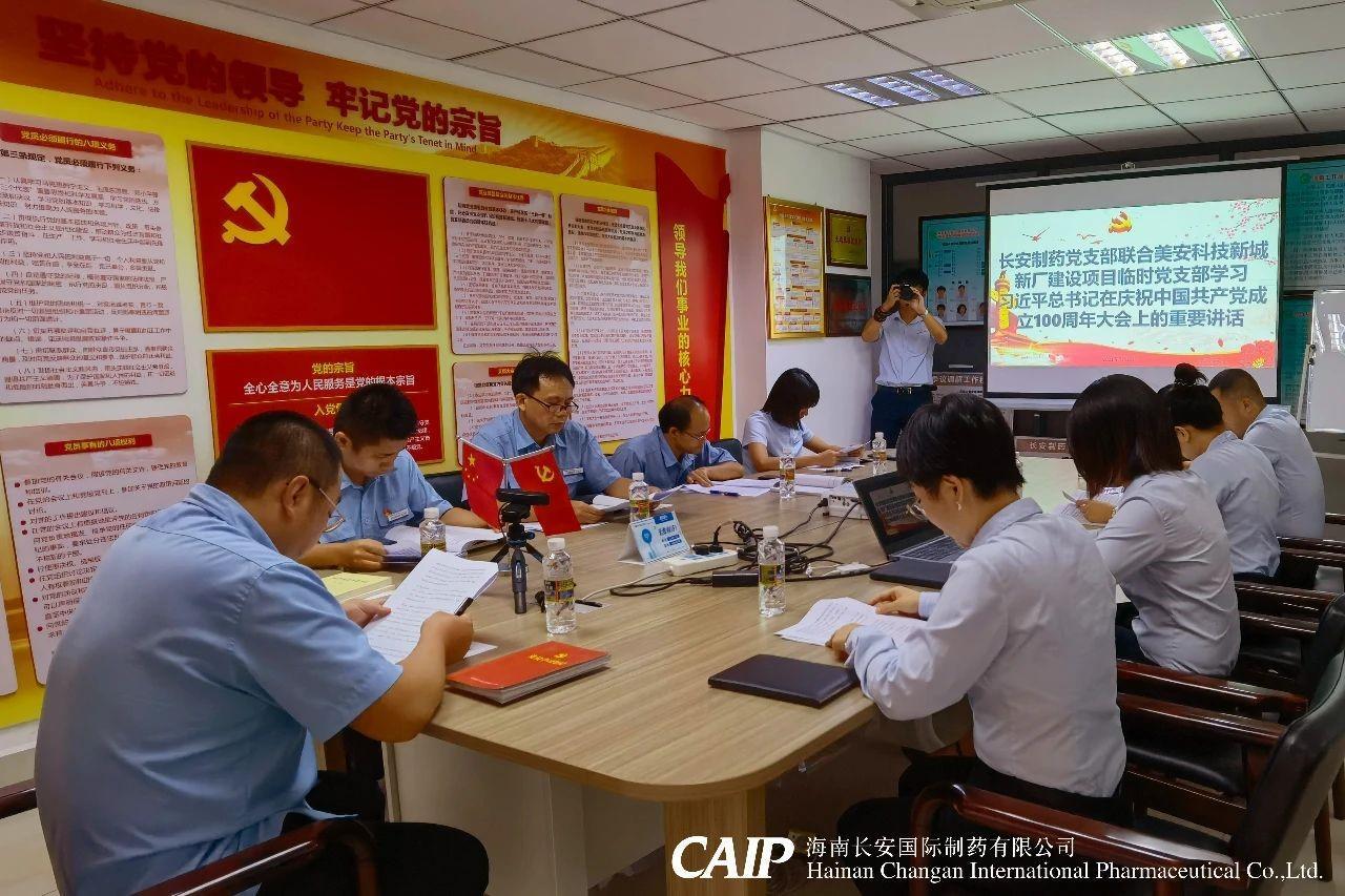 2021年7月26日,根據(jù)海口市委宣傳部《關(guān)于轉(zhuǎn)發(fā)<關(guān)于組織召開(kāi)黨史學(xué)習(xí)教育專題組織生活會(huì)的通知>的通知》(海學(xué)組辦發(fā)〔2021〕17號(hào))文件指示精神,按照中共??趪?guó)家高新區(qū)工委的部署要求,長(zhǎng)安制藥黨支部聯(lián)合美安科技新城新廠建設(shè)項(xiàng)目臨時(shí)黨支部召開(kāi)黨史學(xué)習(xí)教育組織生活會(huì),全體黨員和入黨積極分子參加。