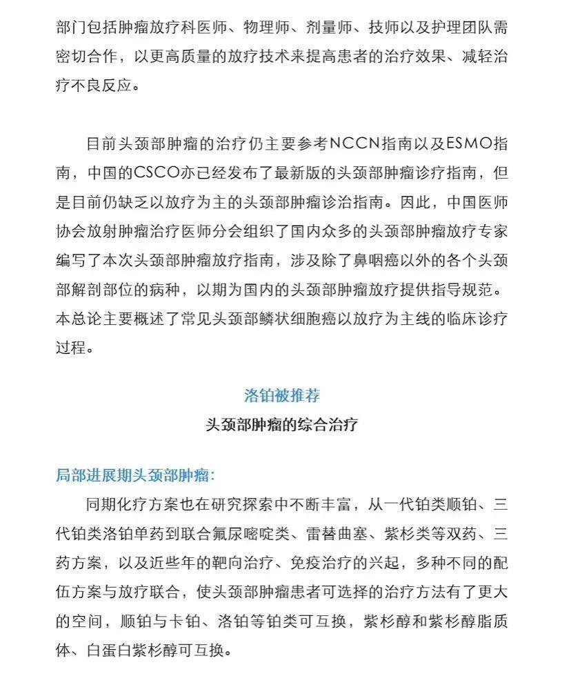 洛鉑入選中國頭頸部腫瘤放射治療指南(2021版)